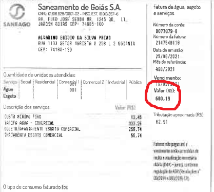 Água – R$ 550,17
