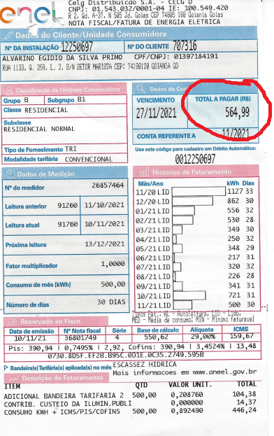 Energia – R$ 564,99