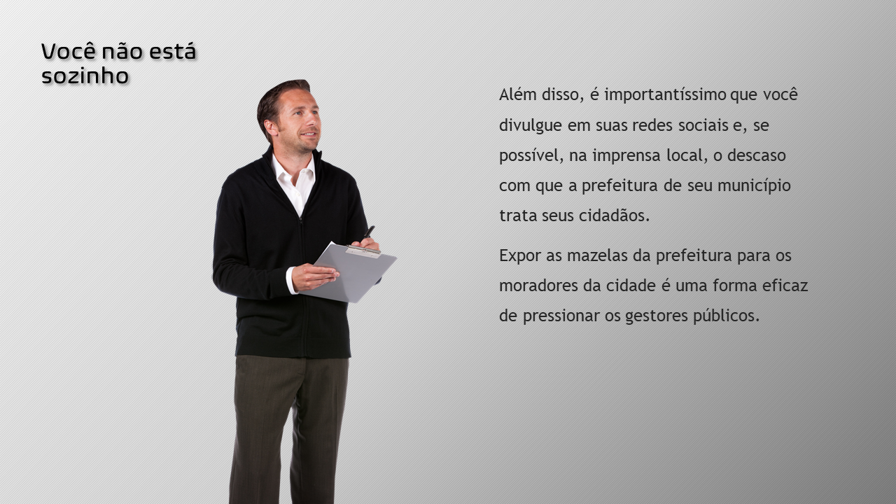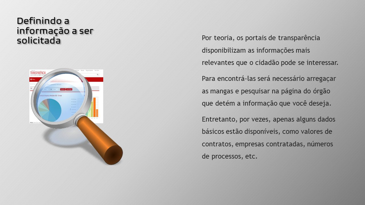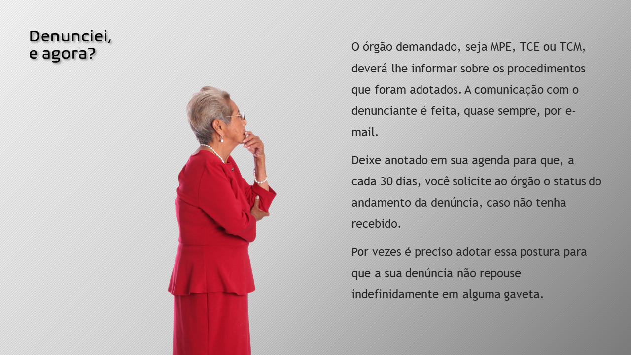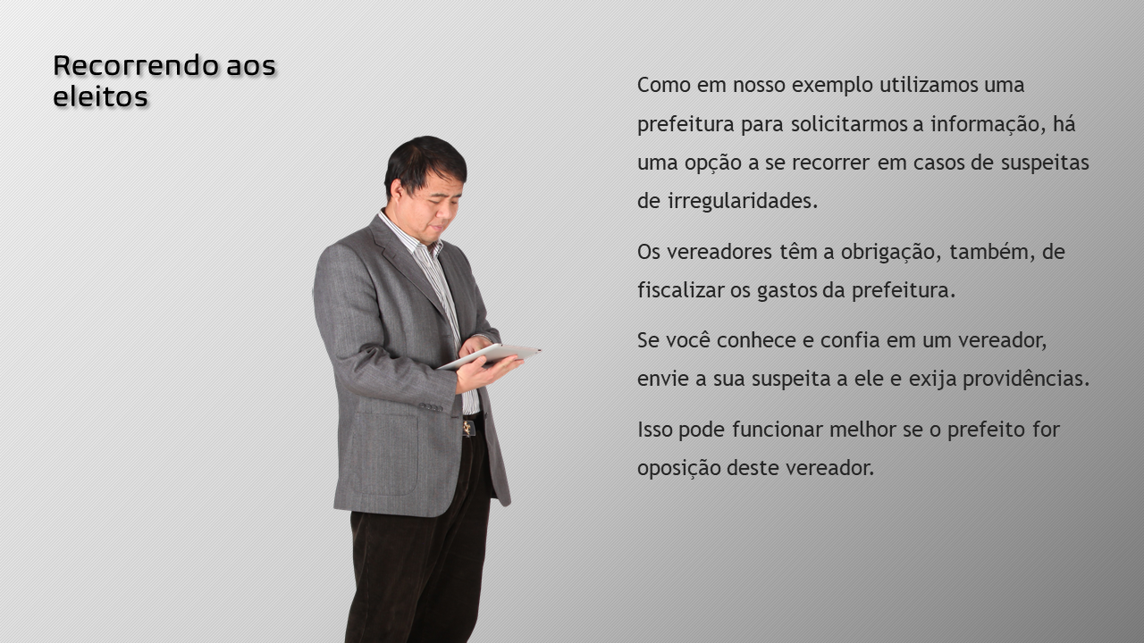 Sabe-se também que, por mais que desejam, muitos cidadãos não sabem por onde começar as fiscalizações nas contas do município e, por vezes, não o fazem por receio de sofrerem perseguição.