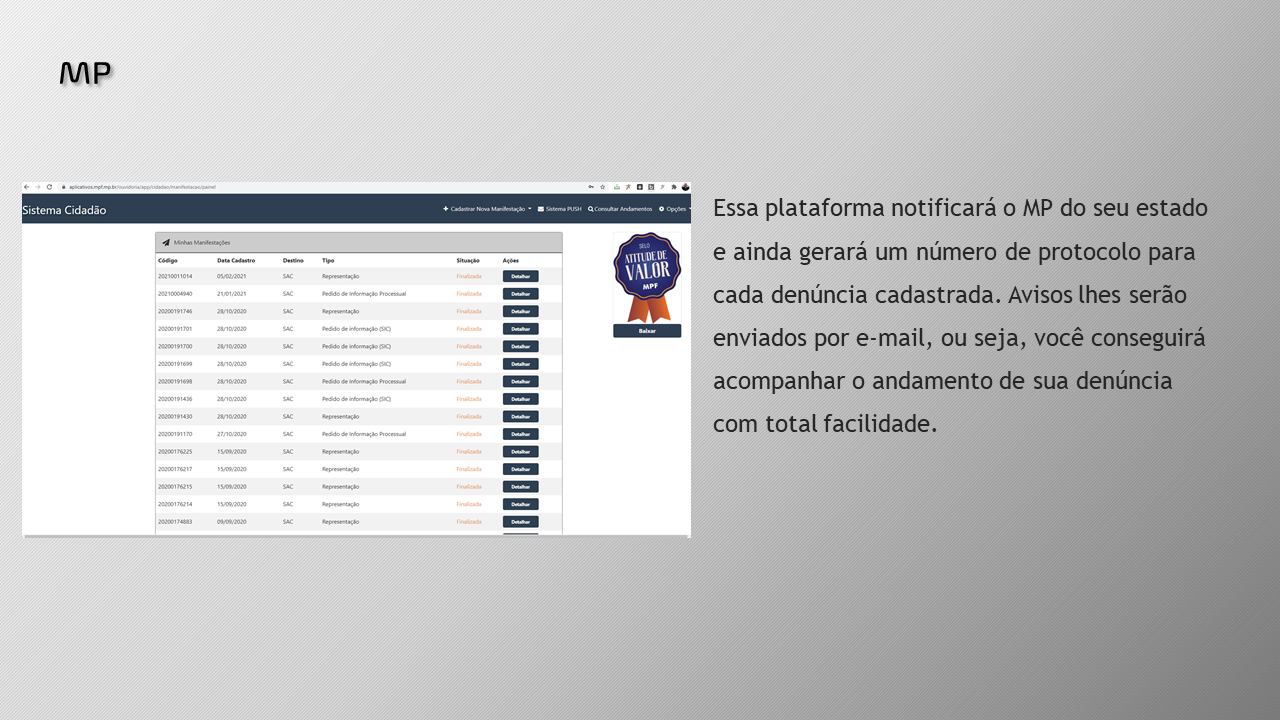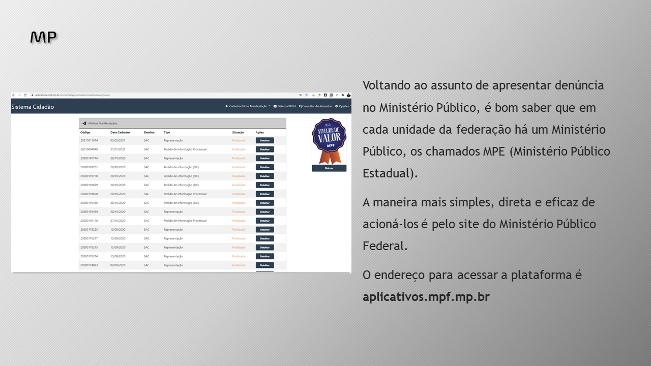 Para denunciar no MPE via site do MPF, você precisará fazer o cadastro neste link.
